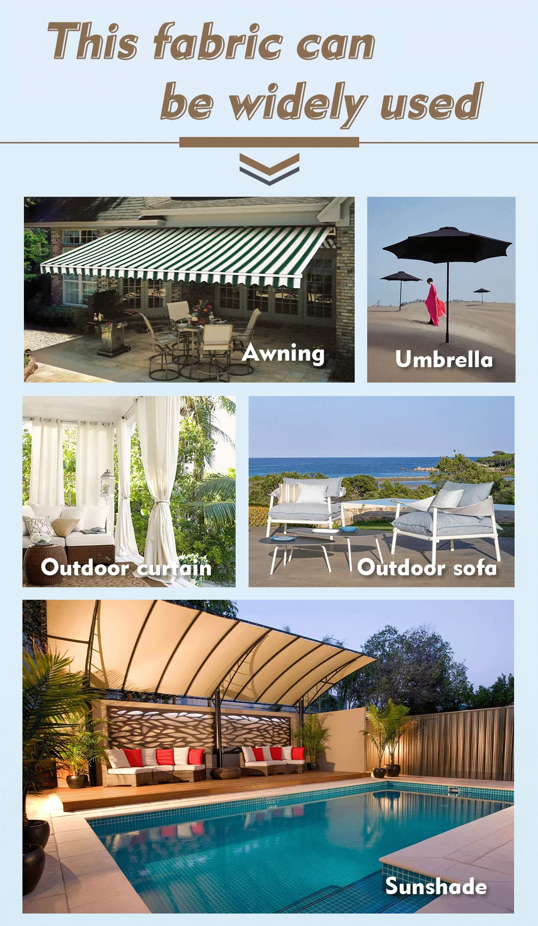 Oliphen fabric has the following properties: 1, excellent weather aging resistance, prolong the service life. 2, good acid and alkali resistance, enhance the ability to resist chemical corrosion. 3. Good light resistance, UV resistance and oxidation resistance. 4, with flame retardant, fire safety, but also waterproof. 5. Excellent tensile resistance, tear resistance and peel resistance.